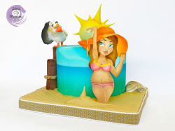 L’ispirazione è arrivata guardando un biglietto di auguri; mi era piaciuta l’idea della ragazza ammiccante che gioca con la sabbia così l’ho resa mia .